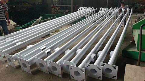 路燈桿的生產工藝主要分為以下幾個步驟: 1. 材料準備:選擇合適的材質,一般路燈桿常用的材料有鋼鐵、鋁合金等。材料一般通過購買或者自行配料的方式準備。 2. 桿體加工:首先,根據設計要求,將材料切割成合適的長度。然后,使用專業的焊接設備將桿體的各個部分焊接在一起。焊接要求焊縫牢固,無裂縫。接下來,對焊接處進行打磨,使其表面光滑。